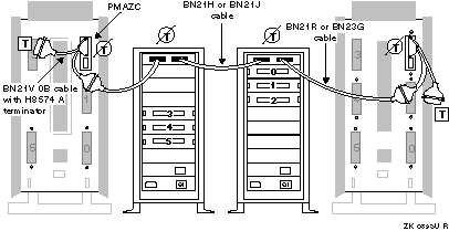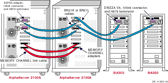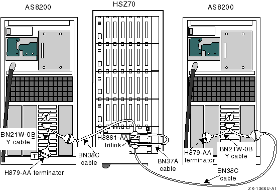 Two AlphaServer 2100A systems with KZPSA adapters and H885 trilink connectors