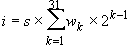 i = (-1) x (0 x 20 + 0 x 21 + 1 x 22 + 0 x 23 + 1 x 24)