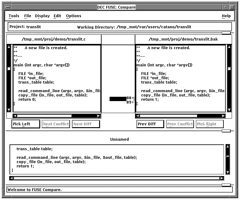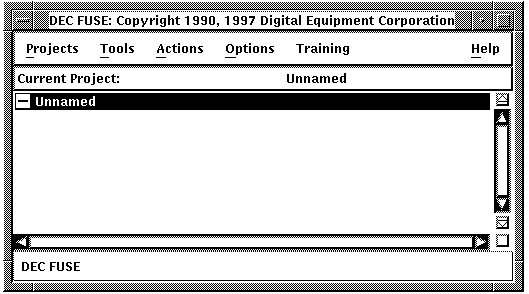 Like most FUSE tools, the Control Panel has a transcript area and an information area. The transcript area in the Control Panel lists all open projects and the names of the tools started in those projects. In other tools, the transcript area lists data pertinent to that tool (such as source code text in the Editor, the results of a build in the Builder, or program errors in the Ladebug Debugger).