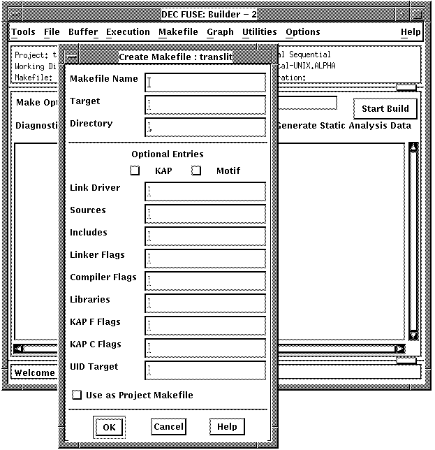 In the Create Makefile dialog box, enter the names