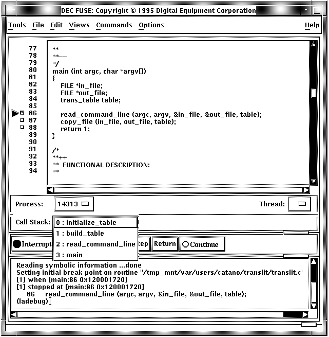 After you get a clean build, you can try running the application. If, when you run it, your application produces a segmentation fault and a core file, you can invoke the Debugger (Digital Ladebug for Digital UNIX Systems) from the Tools menu in the Editor, the Builder, or the Control Panel.