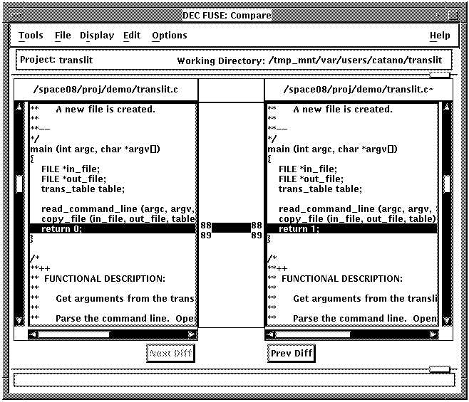 Use the buttons below the display area to obtain additional information about each revision (for example, who worked on the revision, when it was worked on, or comments that were logged when the file was checked in).