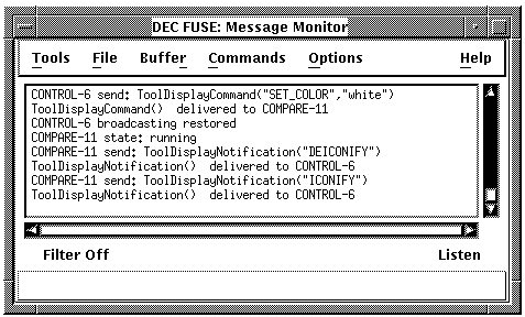 The Message Monitor is available only in the FUSE base system and is most useful when you are using EnCASE utilities to integrate a non-FUSE tool into the FUSE environment. It displays tool state changes and all messages sent among FUSE tools and other tools that have been integrated into FUSE.