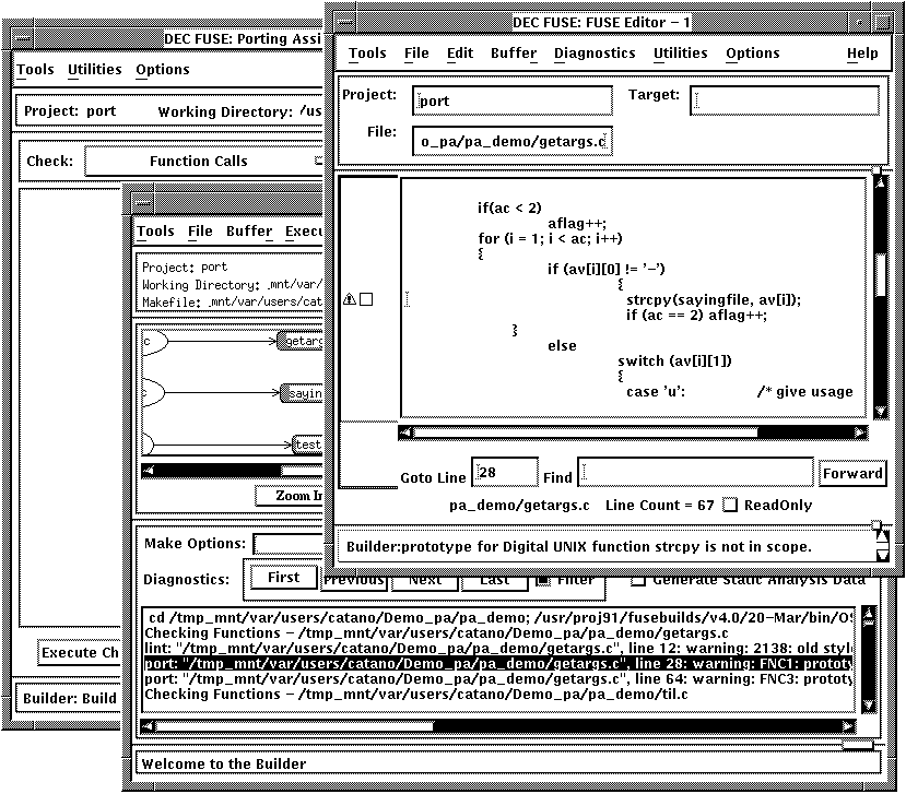 FUSE and the Porting Assistant support a planned strategy for porting primarily through the Porting Assistant checks, along with functions in the Builder, the editors, and the Search tool. That is, the Porting Assistant helps you to analyze your code to uncover classes of problems before moving directly to compiling your application and dealing with the errors as they occur. Even if your code compiles cleanly, the analysis made possible by the Porting Assistant can help detect run-time problems.