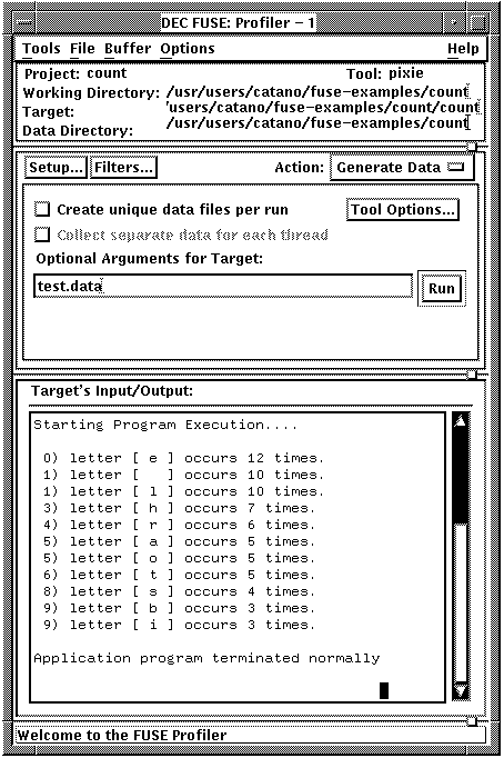 % fuseprof [-cwd] [-data directory-path] [Xt-options] [target]