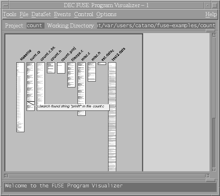 When you use the Program Visualizer in conjunction with another FUSE tool, that tool performs its operation, creates a DataSet file that contains the results of its operation, and then starts the Program Visualizer and opens the DataSet file it created. When you start the Program Visualizer without using another FUSE tool, the Program Visualizer's display area is blank. After you start the Program Visualizer, you must specify the data you want to visualize.