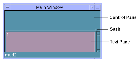 A paned window is a combination of two or more panes (control, text, draw area, or term panes, in any combination) into one virtual window with multiple panes, one above the other, separated by a movable sash. While the paned window maintains a constant height, the individual panes become smaller or larger as you move the sash between them.