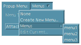 Menus can be attached to menu buttons, menubar items, lists, and any of the four types of panes. A menu is automatically attached to an option menu, so there is no need to attach a menu to it.