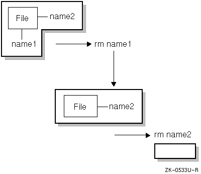 In addition to removing one or more files, rm also removes the links between files and filenames. The rm command actually removes the file itself only when it removes the last link to that file. For information about using the rm command to remove links, see Section 3.4.5.