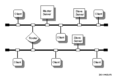 Figure 7-1 shows a domain in which there is a master server, two slave servers, and some clients.