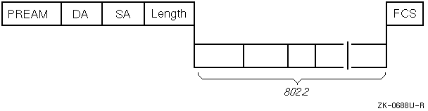 Figure E-3 illustrates the 802.3 frame format. Note that the 802.3 frame format contains the 802.2 structure, which is illustrated in Figure E-5.