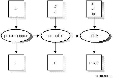 | Compile, link, and load programs, build shared libraries | Compiler drivers, link editor, dynamic loader | This chapter, Chapter 4, cc(1), c89(1), as(1), ld(1), loader(5), Assembly Language Programmer's Guide, DEC C Language Reference Manual |