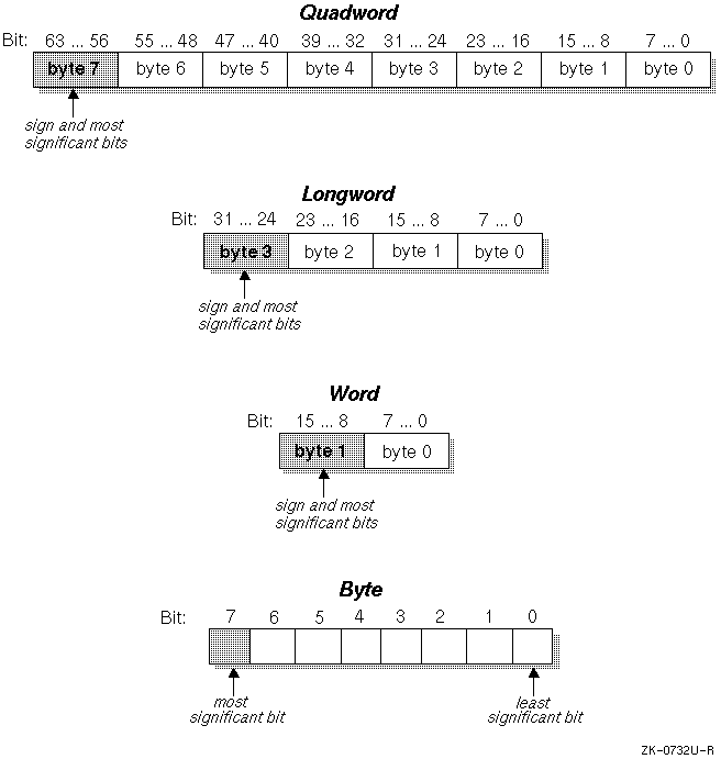All Alpha systems use the following byte-addressing scheme for aligned data: