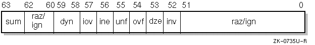 | 63 | sum | Summary - records the bitwise OR of the FPCR exception bits (bits 57 to 52). |