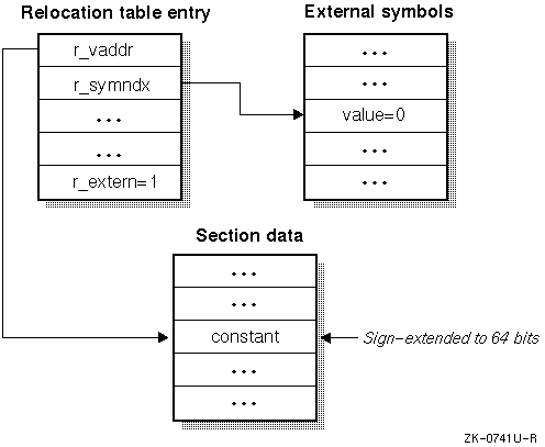The assembler uses the difference between the address for the symbol x and the value of the global pointer as the value of the displacement (n) for the ldq instruction. The linker gets the value of the global pointer used by the assembler from gp_value in the optional header (see Table 7-4).