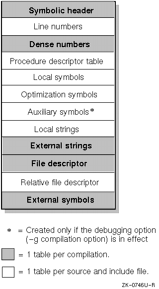 The symbol table is created by the compiler front-end as a stand-alone file. The purpose of the table is to provide information that the linker and the debugger need to perform their respective functions. At the option of the user, the linker includes information from the symbol table in the final object file for use by the debugger. (See Figure 7-1 for details about object file format.)