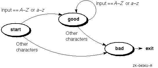 illustrates a simple lexical analyzer that has three states: