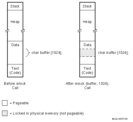 Exercise caution when you lock memory; if your processes require a large amount of memory and your application locks memory as it executes, your application may take resources away from other processes. In addition, you could attempt to lock more virtual pages than can be contained in physical memory.