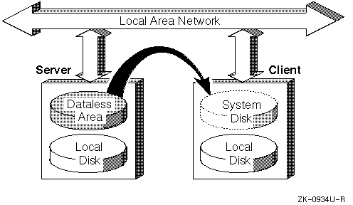 As indicated in Figure 9-1, clients must have local disks. In addition to local disks, clients can import file systems from any other computer to which they have network access. Clients use swap and dump space on their local disks.