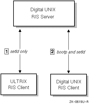 Support of differing bootstrap protocols restricts the use of the Digital UNIX and ULTRIX operating systems together in RIS environments.