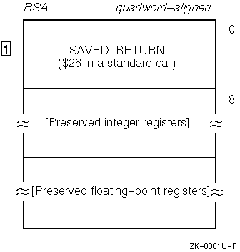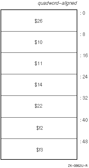 by the registers specified in the procedure descriptor by PDSC_FLAGS_IMASK and PDSC_FLAGS_FMASK. The details of how to lay out and