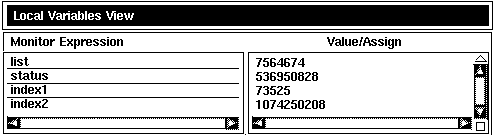 In the Local Variables View, you can monitor the values of all local variables and parameters passed to a routine, as shown in Figure 4-9.