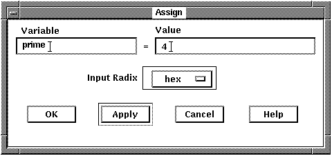 Figure 4-16 shows a new value and input radix for the variable prime.