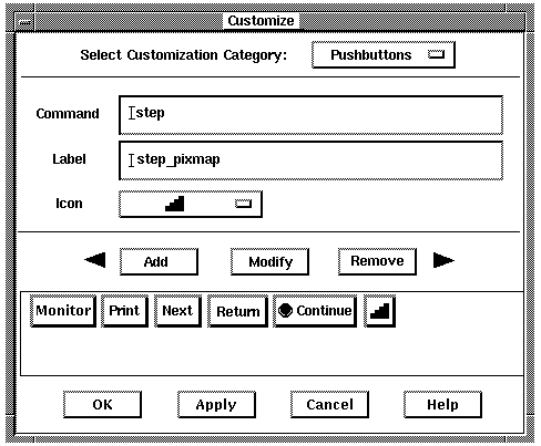 The following sections explain how to customize push buttons interactively through the window interface. You can also customize push buttons by editing the resource file (see Section 4.9.4).