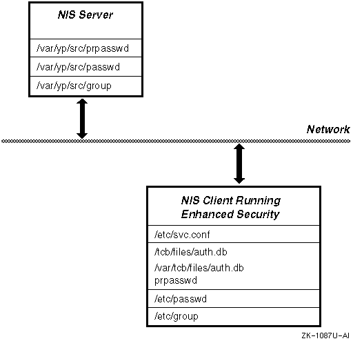 NIS can be used to distribute part or all of the enhanced protected password database as well as part or all of the BSD user account database.
