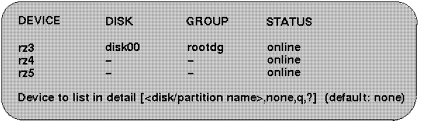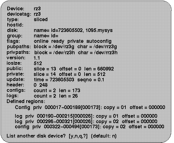 This example shows that disk rz3 has been selected.