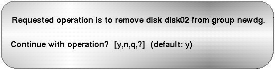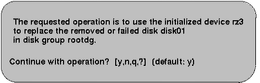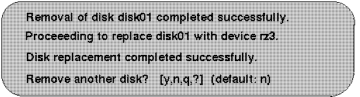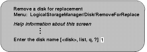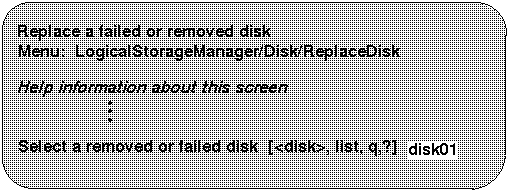 | 4 | Removes a failed disk, retaining the disk name, and replaces it with another disk. |