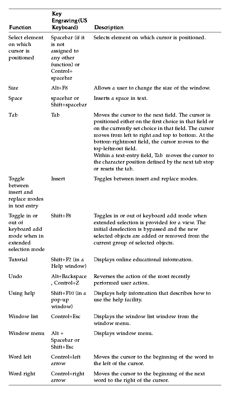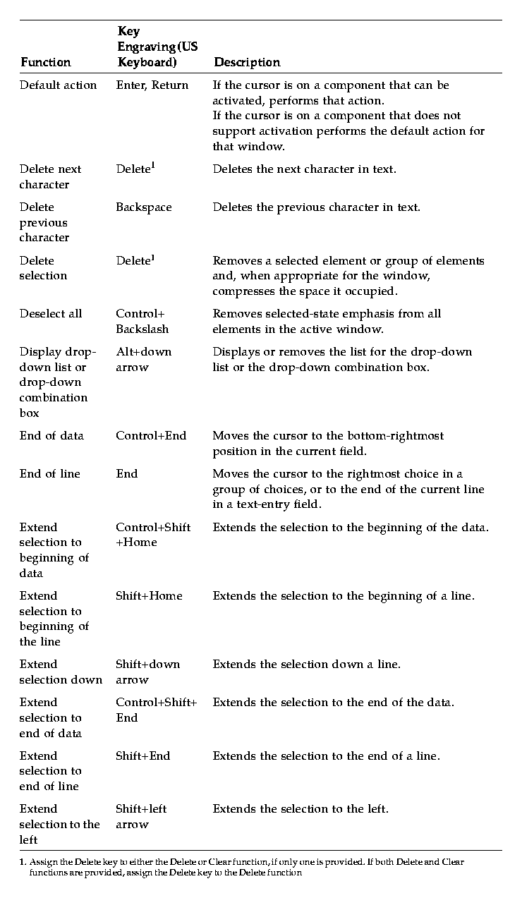 Table A-3 Keyboard Mappings for Space Bar and Enter Key
