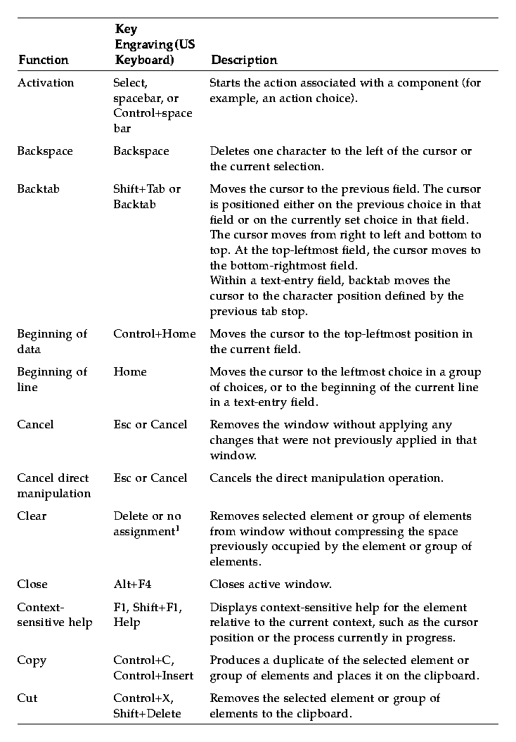 Table A-1 Keyboard Functions and Key Engraving (continued)