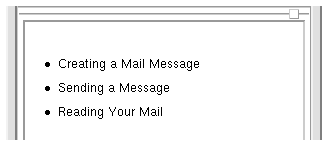 Here's a simple list. Because the type isn't specified, it defaults to a bulleted list. Because spacing isn't specified, it defaults to loose, which leaves a blank line between each item.