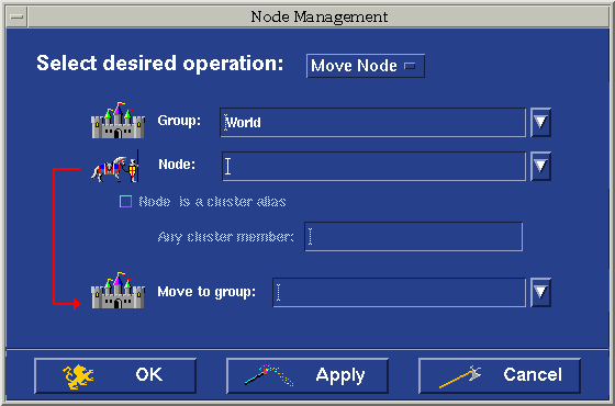 Click in the Move to Group field and type the name of the group the node is to be moved to, or choose the group from the drop-down list.
