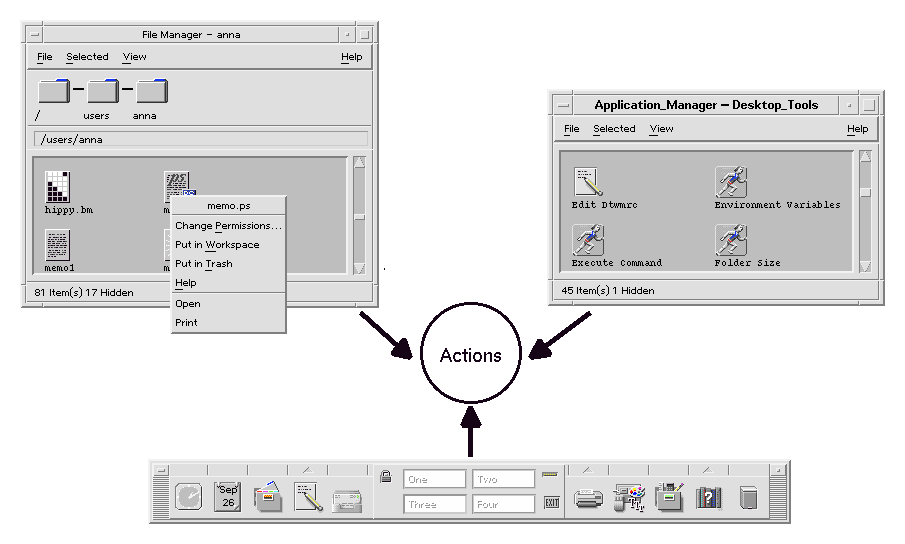Once the desktop determines that a file is an action file, the underlying action definition is used to define the appearance and behavior of the action file.