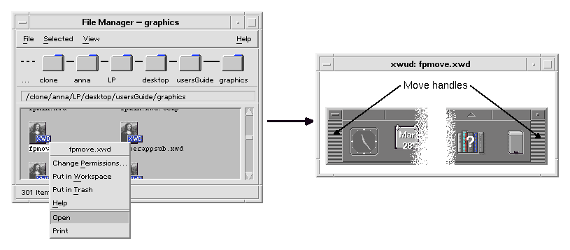 Initially, the Xwd Display icon appears in the Desktop_Tools application group. However, you can create additional copies of the action icon in any directory for which you have write permission. As long as the Xwud action definition is part of the database, any executable file you create named Xwud will be an action file representing that action, and its icon in File Manager or Application Manager can be used to run the action.