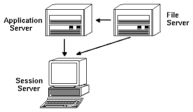 Figure 5-3 X terminals get session services from a session server