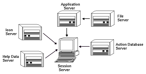 There may be situations in which you want to place database (actions and data types), help, or icon data elsewhere on the network. For example, if your network uses multiple session servers, you might want to create a help server on which all the help data files for desktop applications (File Manager, Style Manager, etc.) are stored. This conserves disk space because the help files do not need to be duplicated on each session server.