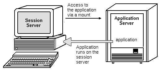 The standard application server configuration runs applications on the application server. Sometimes it is desirable to have the application installed on a remote system but executed locally on the session server.
