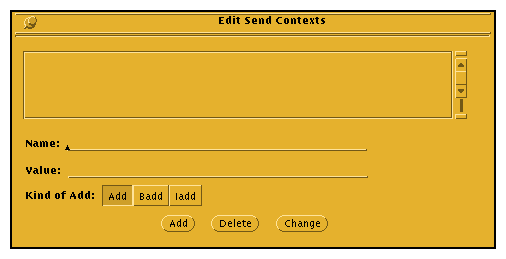 - Press this button to add, change, and delete send message contexts. The popup window displayed, shown in Figure 5-3, allows you to edit contexts to be sent with your messages.
