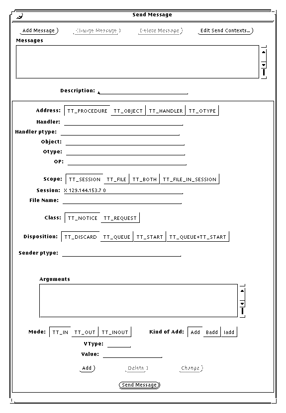 - Press this button to popup a panel which allows you to create, store, and send ToolTalk messages.