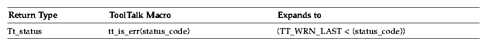 The ToolTalk service returns error status in the function's return value rather than in a global variable. ToolTalk functions return one of these error values: