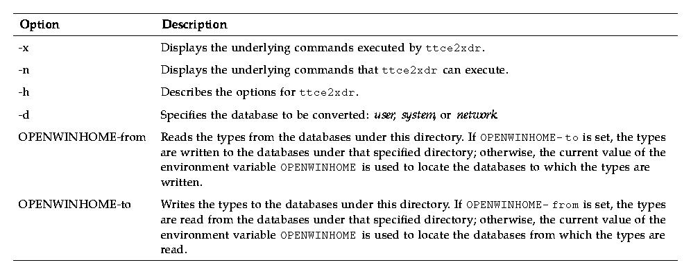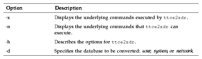 Table A-1 ttce2xdr Script Options