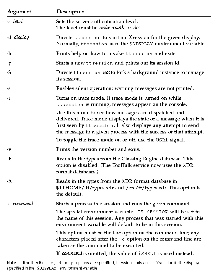 See Table 2-1 for a description of the ttsession command line options.