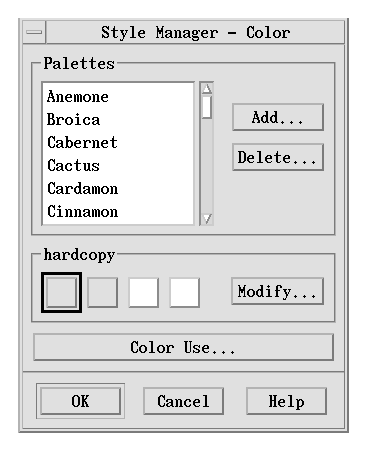 When you delete a palette, Style Manager prefixes the name of the palette with a ~ and stores a copy in the HomeDirectory/.dt/palettes directory.