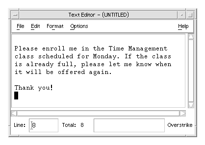 A new document named (UNTITLED) is created when you start Text Editor. To enter text in your document, see "Entering Text". You provide a new file name when you save the document.