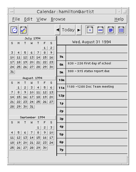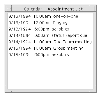 Calendar offers the capability to look up, insert, and delete appointments through a terminal emulator command-line interface.