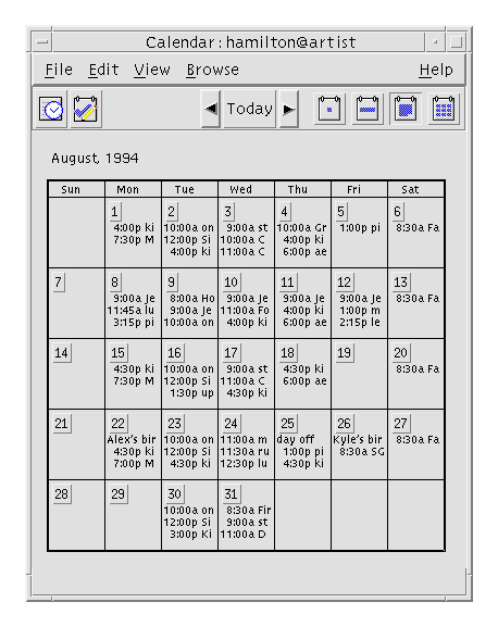 system% dtcm_lookup -c hamilton@artist -d 10/28/94 -v day