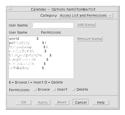5. Click Add Name to add the calendar to the Access list with the permissions you've chosen.